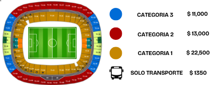 Los precios incluyen transporte redondo, boleto para el partido (en caso de seleccionar categoria), visita a FIFA FAN FEST y seguro de viaje abordo de la unidad.