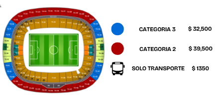 Los precios incluyen transporte redondo, boleto para el partido (en caso de seleccionar categoria), visita a FIFA FAN FEST y seguro de viaje abordo de la unidad.